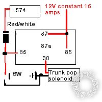 Trunk pop, wire as follows you will need the diode (1N4004):-