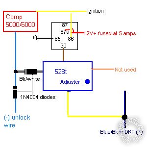 ERROR! Sorry, the first diagram should also have a red and a black wire on the 528t. The red goes to 87a on the upper relay, the black to ground (85 on the upper relay).