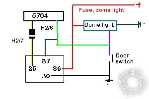There are 2 wires on my door switch. One that is a continuous ground and the other that switches to ground when the door is opened (or closed , I can't remember which one). So, does the door trigger wire (h2/6) splice into the wire that switches to ground? And pin 30 from the relay attaches to the constant ground, correct?