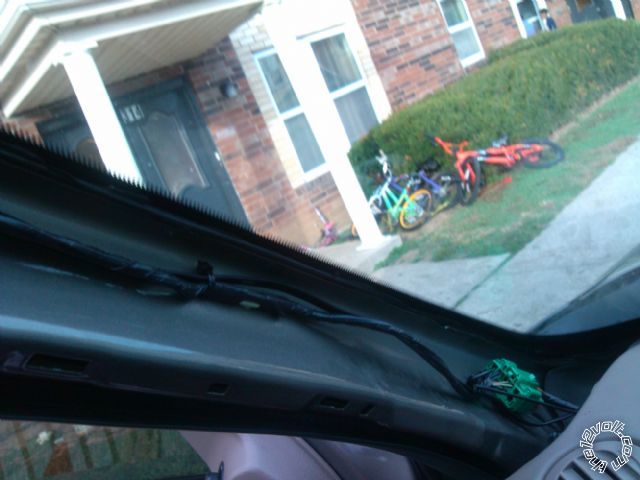 on the passenger side under the hood at the firewall there will be two wires (I think they are gray and black) coming in with a rubber boot. from the inside by the glove box run a coat hanger thru. make sure to poke thru top of rubber boot and do not mess the factory wires up. after poking coat hanger thru it makes it easier if you then poke a phillips head thru boaring out a bigger hole. then put your coat hanger back in and pull your wires into the cabin.
