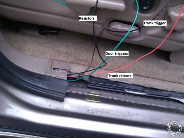 this is how to run wires for the door/hatch triggers,hatch release, and resistor 12v feed.
