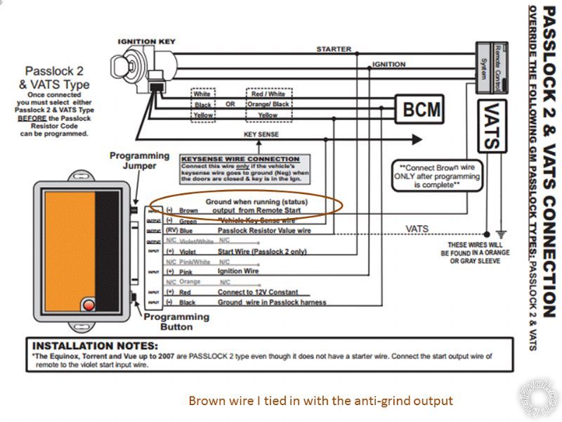 But now that I am thinking about it I may have a conflict using the output of the remote start for both anti-grind and ground for the bypass module. Thoughts???