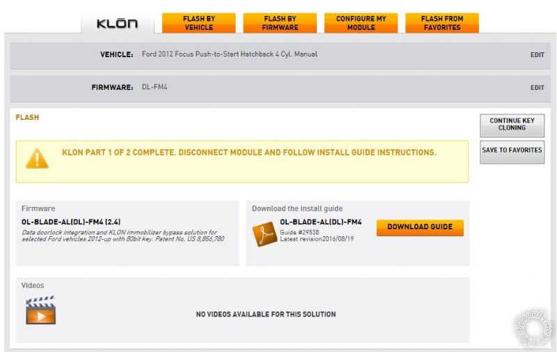 I re-did the KLON programming and installer settings this morning. The alarm portion works fine, the lock-unlock commands work fine, but the remote start does not work: I can't get the shutdown procedure to take.