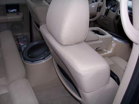 The truck is an 04 F150 supercrew. Its 2 12w6's in the console. The guy I built it for wanted to keep the stock arm rest. Hope you guys like it.
