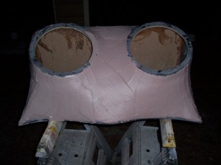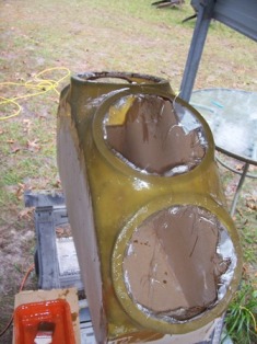 what i think is.......and i say this so many times i sound like a broken record........it looks good, really good. but........what you should have done is build this thing so there is no back. that way when you are at the stage you are at now you can just flip over the box then put all your reinforcment matting on the INSIDE. then put on the back. youll have so much less sanding to do that you wont believe it. im not sure when people started doing it the opposite way, or who is was that started that school of thought, or started using fleece either, but i find those ways to be not near as good. and its very hard to make anything with great detail like that.