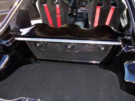 I would do corner boxes, and an arched amp rack across the rear strut mounts (like a rear strut bar with amps on it) all fiberglass of course, and painted to match the car or if you've got a theme in mind. You could also throw a few screens in there too.