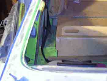 These next pictures are about the amp rack and lift. The '73 and '74 ghias did not come with a back seat. VW decided it was not worth it to engineer approved seatbelts for a back seat that was raerly used. What I did was raise the hieght of the cover for inches to the same hieght as the luggage area that was behind the "seat". This allowed me to place two batteries and the amp rack in the space. I keep a very stock looking area. I also cleaned up the luggauge area with the panels other wise you see the inner fender of the back wheels.
