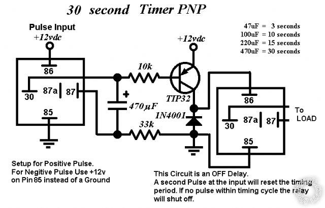 Thanks for 12 volt.com and team member hotwaterwizard for OFF DELAY CIRCUIT, I am going to use the circuit on my diesel car for remote start and I also want to include antigrind feature, but my confusion is I want wait to start relay like 528T, but the relay circuit is shown as OFF DELAY, I need ON DELAY CIRCUIT, also I want to learn the difference between NPN and PNP applications. I feel very happy to be with you for discussing though I am not a professional, but still I can make things what I want with your kind help. The cost of shipping is tripled if I am to go for 528T. Hats off to your help. My requirement is for positive pulse.